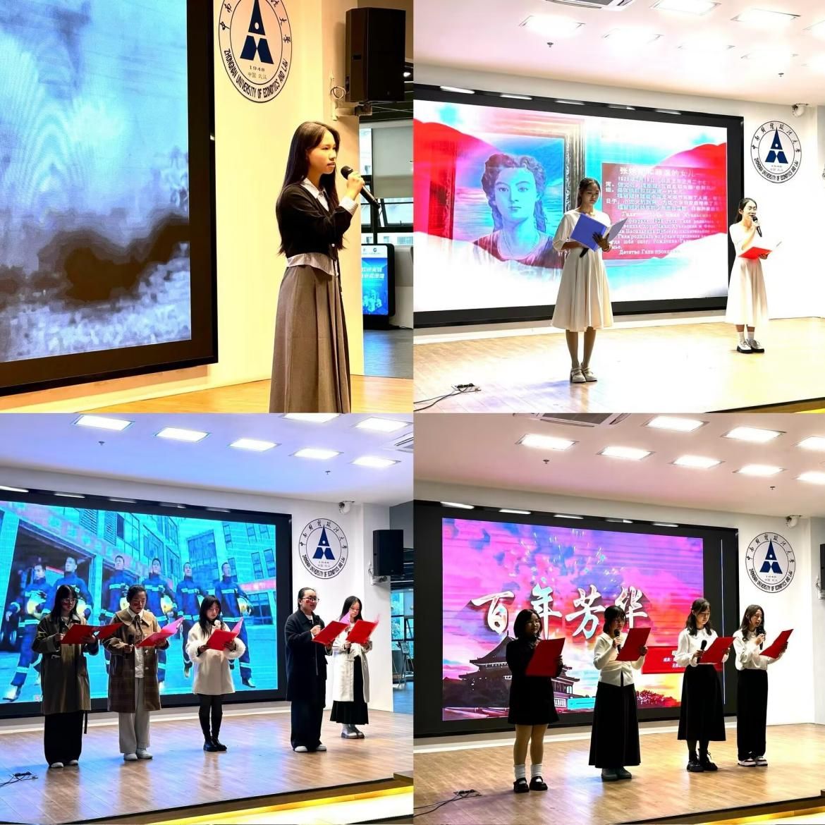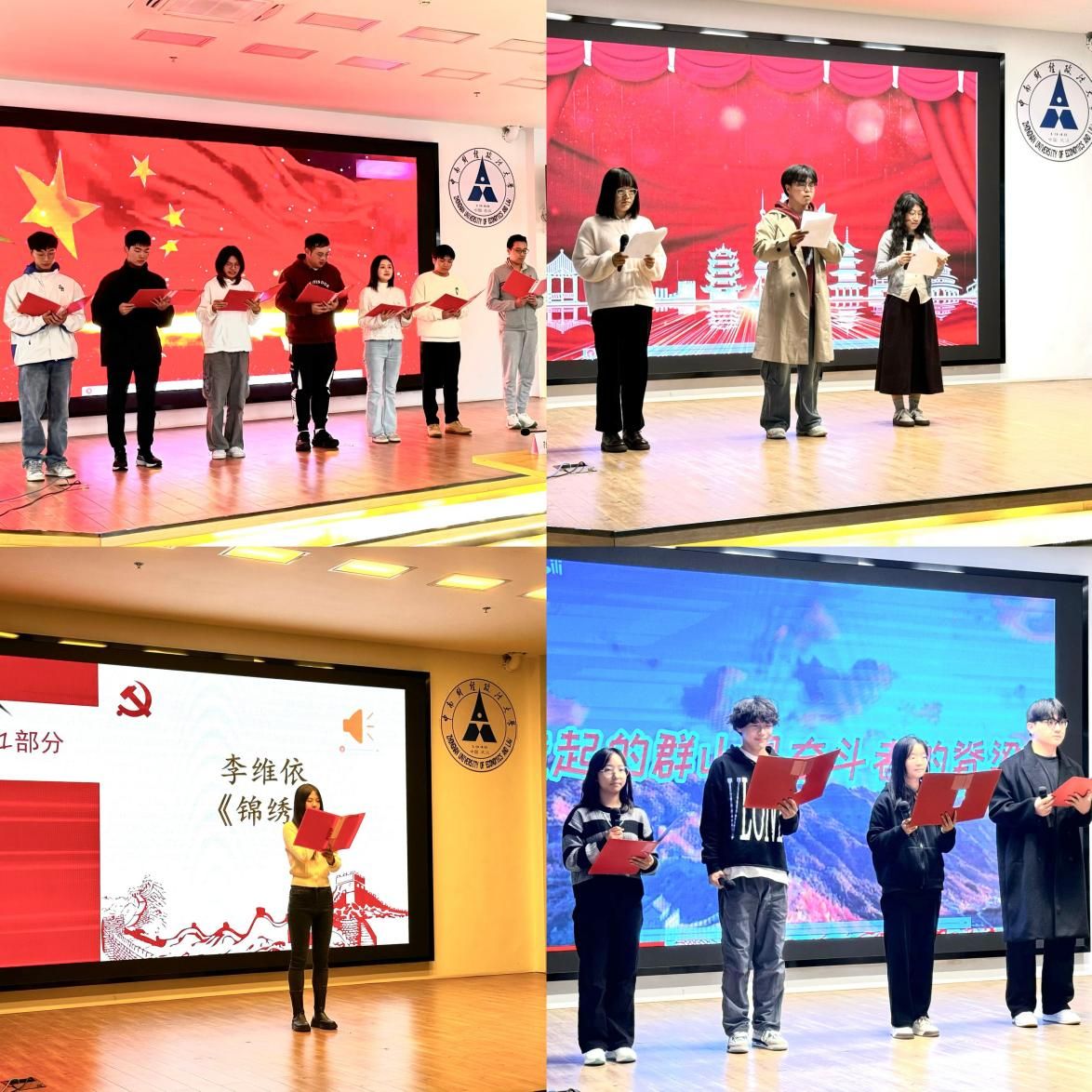 强国复兴有我队、画梦为马队、可爱小美队、德文之声分别朗诵了《强国复兴有我》《丹青染就七十五,少年共谱中华图》《锦绣》《隆起的青山是奋斗者的脊梁》,选手们慷慨激昂,描绘着抗战英雄无畏艰险的铁血热情,歌颂着中华民族屹立于世界东方的豪情壮志,抒发着“此生无悔入华夏”的深情告白。