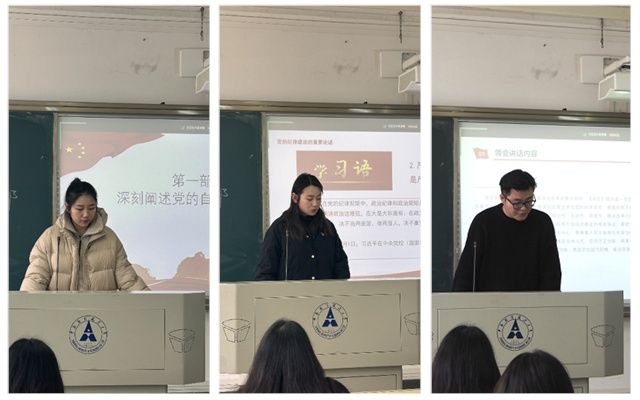 在“哲里研声”之“我看新时代”主题党课环节,王姜尹同志作第29期《区域协调发展战略——从十六届三中全会到二十届三中全会》主题党课学习,她强调,我们要牢牢把握区域协调发展战略的重要意义,区域协调发展战略既是解决当前区域发展不平衡不充分问题的“必答题”,也是实现共同富裕、推动中国式现代化的“长远题”。鲍星悦同志作第30期《深入学习领会新修订的<中国共产党纪律处分条例>》主题党课学习,党员同志应深刻认识修订《条例》的重要意义,准确把握《条例》修订的主旨要义。徐宏宇同志作第31期《沂蒙星火 青春传承》主题党课学习,其从历史视角出发,弘扬了“党群同心、军民情深、水乳交融、生死与共”的沂蒙精神。
