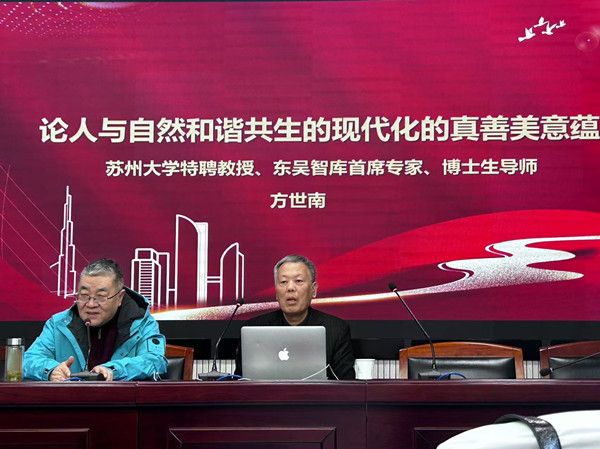 (通讯员祝婧瑞摄影杨诗涵)2月28日上午,苏州大学东吴智库首席专家、特聘教授方世南来我院进行了“人与自然和谐共生的现代化的真善美意蕴”为主题的讲座。讲座由王雨辰院长主持,学院部分研究生和博士生参与了此次讲座。