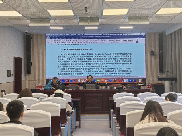 讲座伊始,段忠桥教授详细介绍了G.A.科恩的家庭背景、学术生涯和学术贡献。段教授特别指出,科恩开创并引领了分析的马克思主义学派,并在政治哲学领域为平等主义辩护,以此用社会主义的平等主义抨击资本主义的平等主义。讲座过程中,段教授阐明了科恩理解的社会主义,即与资本主义私有制相对立的公有制经济制度,也就是生产性资产的共有制。尽管科恩创造性地使用了“生产性资产”代替“生产资料”和“共有制”代替“公有制”,但段教授认为本质上不存在太大区别。