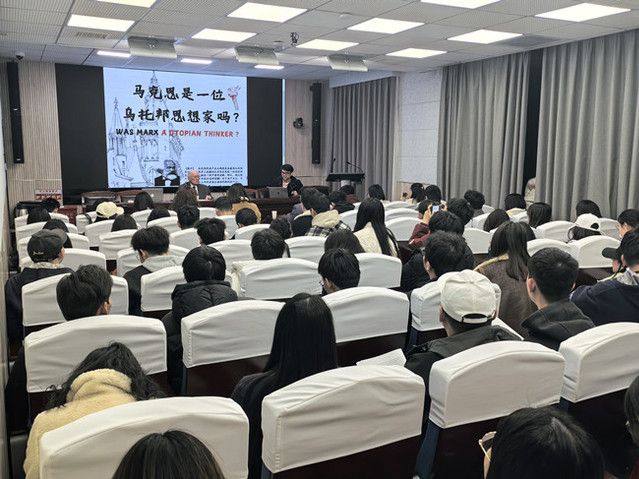 (通讯员孙彬 摄影李兆熙)3月17日晚,英国肯特大学荣休教授、伦敦大学戈德史密斯学院研究员、世界知名马克思主义理论家大卫·麦克莱伦受邀来我院讲学。本次讲座的主题为“马克思是一位乌托邦思想家吗?”。本次讲座由哲学院龙智生副教授主持,学院博士生、研究生和本科生以及武汉高校诸多学子参与。
