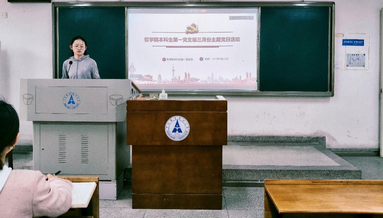 (学生通讯员:霍子涵/摄影:霍子涵)3月27日下午1点,哲学院本科生第一党支部在文澜楼302教室及线上腾讯会议,开展“凝心铸魂强党性,实干笃行启新程”主题党日活动,支部书记陈意萍和支部全体党员参会。活动由支部副书记王婧巧同志主持。