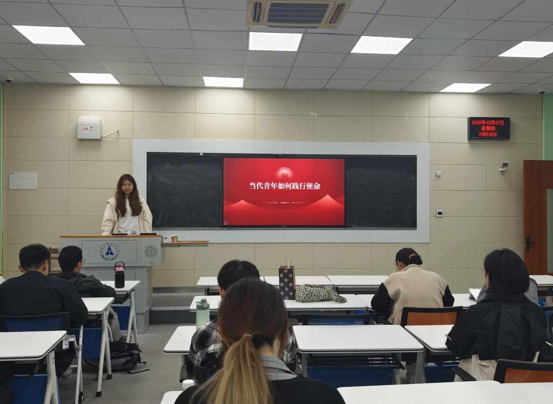 下一项,由团支书孟才雅牵头,支部成员分组抽取《共产党宣言》、《政府工作报告》选段,结合自身的哲学专业谈谈“当代青年如何践行使命”,将专业与当下现实相结合,彰显青年担当。