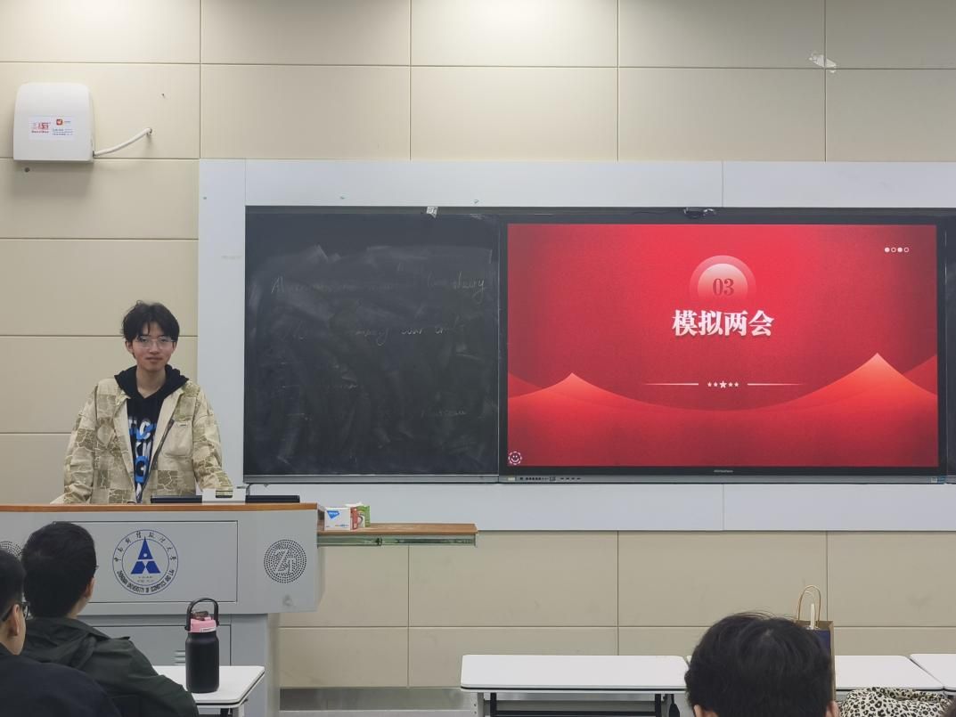 分享结束后,在团支书孟才雅同学的带领下,支部成员分为人大代表与政协委员两组,开展了一次模拟政协会议。由人大代表组负责提案,政协委员组负责回答问题。在模拟政协会议中,万泽希同学作为人大组的代表,提出“聚焦大学生‘毕业即失业’难题”的议案,作为政协委员的代表刘雨昕同学从多方角度对此做出综合性回答。此次模拟会议加强了支部成员对社会热点的关注,也使同学们对两会议程有了更深刻的了解。