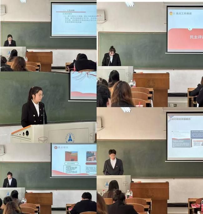 随后,开展团支书述职大会。未参与评选“红旗团支部”的五个团支部依次上台展示,围绕思想建设、组织建设、宣传建设、文化建设、支部荣誉等方面介绍本支部建设情况,展现了各支部积极进取的昂扬风貌。