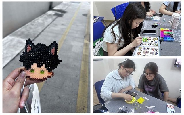 随后,主持人细致地向大家演示了拼豆制作的步骤与技巧。在示范的引导下,同学们迅速上手制作并沉浸其中。一颗颗色彩斑斓豆子被拼接在画板之中,同学们仿佛找到了属于自己的那个方位,细心创造属于自己的图案。色彩不同,图纸不同,独一无二的想法拼接出别具一格图案,正如我们每个人,都有自己的个性和愿景,也可以用不同的画笔和色彩去填充。