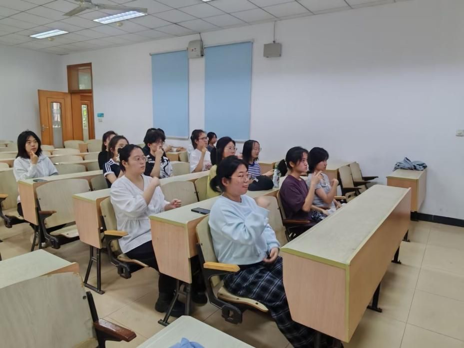 在手语教学环节,爱无声手语协会的志愿者耐心地向哲学院的同学们传授手语知识和技巧。志愿者通过生动的示范和详细的讲解,让同学们逐渐掌握了手语的基本表达方式。在学习过程中,同学们积极参与,认真练习,现场气氛热烈而融洽。经过一段时间的学习,志愿者们与同学们共同用手语演唱演绎了歌曲《追光者》,并将录制好的视频传送给聋儿康复中心,用指尖的跃动传递着爱与温暖。