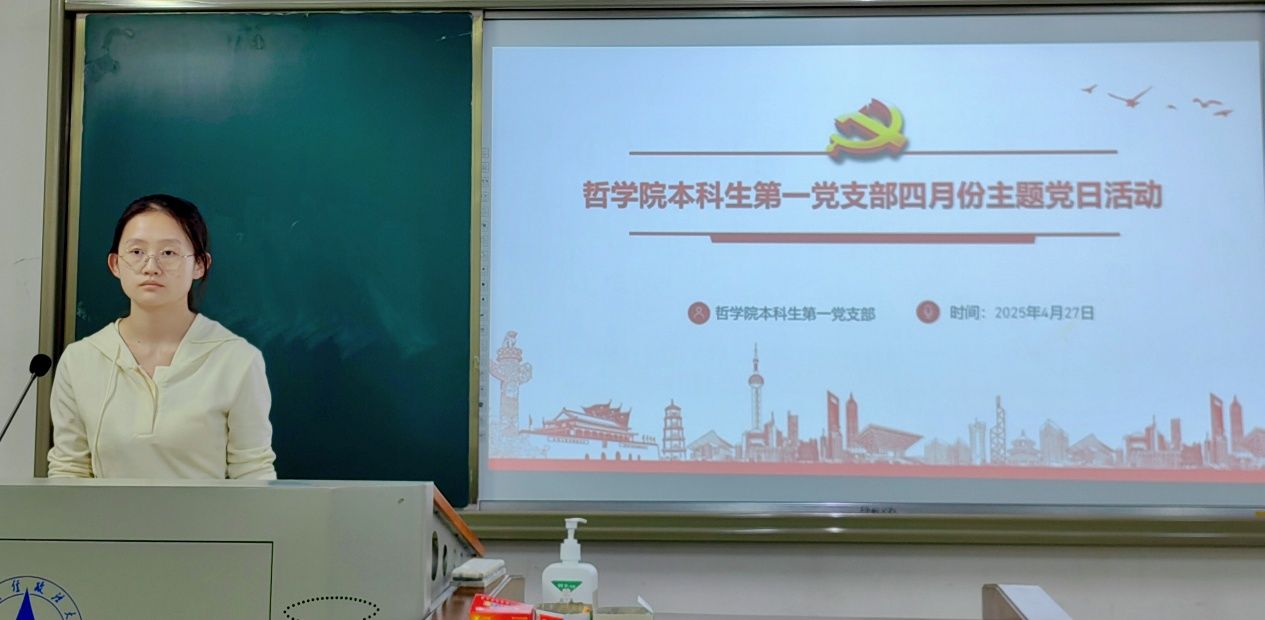 (学生通讯员:霍子涵/摄影:杨冰冰)4月27日,哲学院本科生第一党支部在文澜楼102,开展“学思践悟优作风,凝心铸魂强党性”主题党日活动,支部全体党员参会。活动由王婧巧同志主持。
