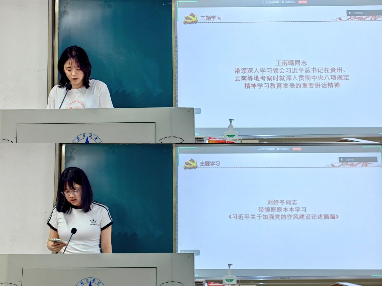 随后,支部开展集中学习活动。王雨晴同志带领深入学习领会习近平总书记在贵州、云南等地考察时就深入贯彻中央八项规定精神学习教育发表的重要讲话精神,进一步提高支部党员的理论水平,增强党性修养,提升能力素质;刘妤冬同志带领原原本本学习《习近平关于加强党的作风建设论述摘编》,强化支部党员作风建设,将作风转变与履职尽责相统一,做到学思用贯通、知信行统一。