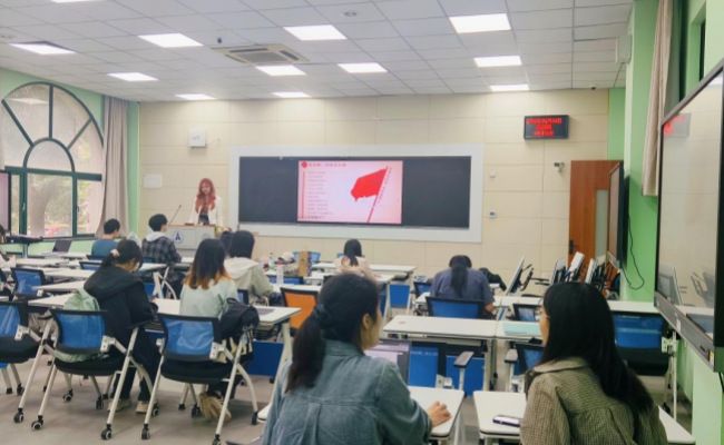 活动伊始,在团支书孟才雅的带领下,支部全体同学齐声高唱团歌。激昂的旋律回荡在教室中,每一位同学都精神饱满,歌声中满溢着青春的朝气与力量,进一步增强了团员们的使命担当感。