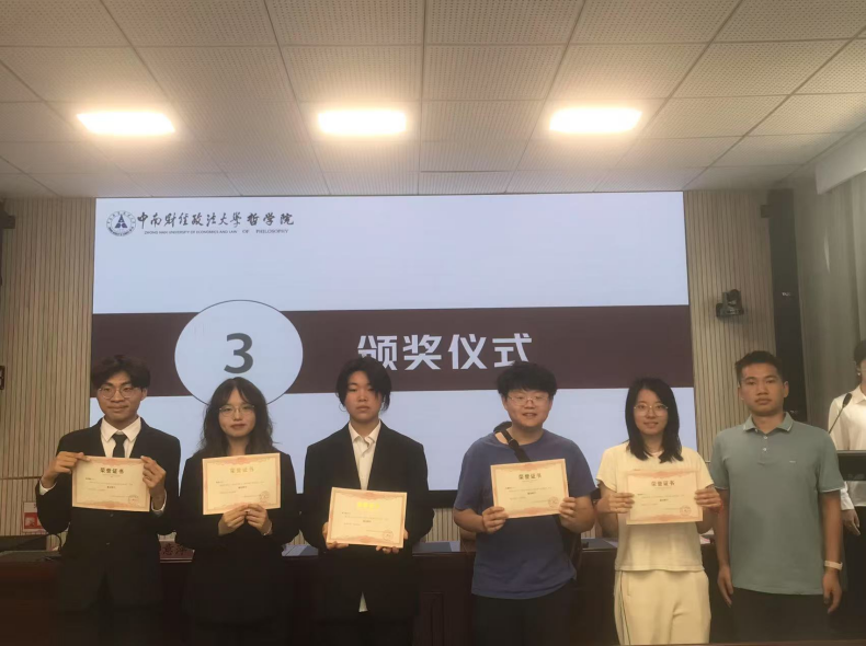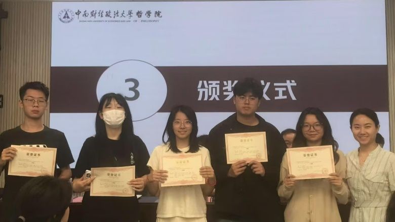 陈意萍老师为荣获三等奖的华中师范大学文学院辩论队、中南民族大学管理学院辩论队、米兰电竞·(中国区)哲学院辩论队、华中农业大学园艺林学学院辩论队以及华中科技大学人文学院辩论队颁奖