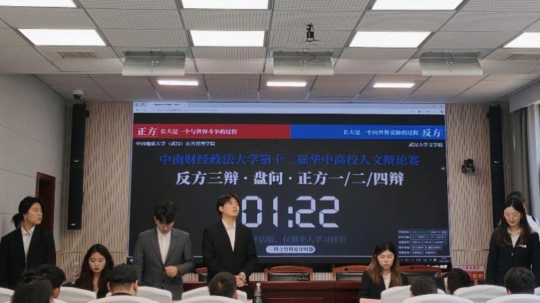 在冠军争夺赛中,正方中国地质大学公共管理学院辩论队与反方武汉大学文学院辩论队,围绕“长大是一个与世界斗争/向世界妥协的过程”这一辩题展开辩论,比赛现场紧张激烈,辩手们热情饱满。自由辩论环节将赛事推向高潮,双方辩手妙语连珠,锋芒毕现。正方以缜密的逻辑层层推进,反方则见招拆招,以柔克刚。每一次攻防转换都迸发智慧的火花,每一轮交锋都碰撞出思想的激荡。辩手们或引经据典,或立足现实,在语言的方寸之间展开激烈角逐。现场观众屏息凝神,时而为精妙论点会心一笑,时而因犀利反驳热烈鼓掌。这场智慧与口才的巅峰对决,不仅展现了人文学子的思辨风采,更诠释了辩论艺术的独特魅力。
