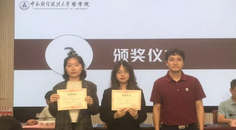 黄路漫老师为荣获一等奖的武汉大学文学院辩论队、中国地质大学(武汉)公共管理学院辩论队颁奖