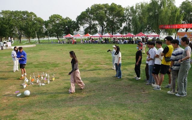活动现场,哲学院研究生会精心打造的“情绪保龄球” 摊位人气爆棚,迎来了各院同学的积极参与,成为热门打卡点之一。在这个趣味十足的活动中,同学们将代表负能量的水瓶当作 “烦恼目标”,每一次的踢球动作都饱含着对压力与负面情绪的释放。大家沉浸其中,尽情享受着运动带来的快乐,仿佛随着水瓶的倒下,那些生活与学习中的烦恼也随之被踢到了九霄云外。