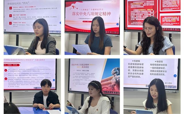 在中央八项规定专题学习环节,杨京丽同志领学《习近平关于加强党的作风建设论述摘编》第四至七章,系统阐释习近平总书记关于加强党的作风建设的重要论述,呼吁党员同志切实将作风建设要求贯彻到日常工作中,以优良的作风推动各项事业不断向前发展。唐健铭同志、黄俊溶同志围绕“中央八项规定是改进作风的切入口和动员令”开展专题研讨,结合实际分享对作风建设长期性、艰巨性的认识。随即开展了“哲里研声”之“我看新时代”主题党课第34期,钮晓艳同志以《贯彻中央八项规定精神的哲学智慧》为题上党课,从哲学视角解读中央八项规定的深层逻辑,强调以辩证思维推动作风建设常态化长效化。