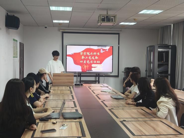 4月24日下午,哲学院本科生第二党支部在文沛楼五楼会议室开展了“学思践悟优作风,凝心铸魂强党性”主题党日活动,活动由吴子敬同志主持,支部书记毛丹丹和支部全体学生党员参加。