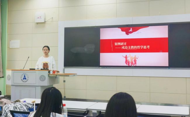 接着,团支书邀请了有支教经历的肖晶晶同学分享支教故事。肖晶晶同学娓娓道来了自己参与“美丽中国”支教的经历,表示这段支教经历让她收获满满。她的分享使同学们了解到支教老师生活的种种不易与诸多收获,也让大家对支教精神有了更为深刻的感悟。