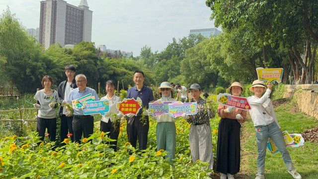 六月的晓南湖畔艳阳高照,金色的向日葵摇曳生姿,仿佛是为师生们的劳动热情鼓掌叫好。经过园艺师的讲解培训之后,大家摩拳擦掌,手持除草工具,分组协作深入田间拔草护苗。