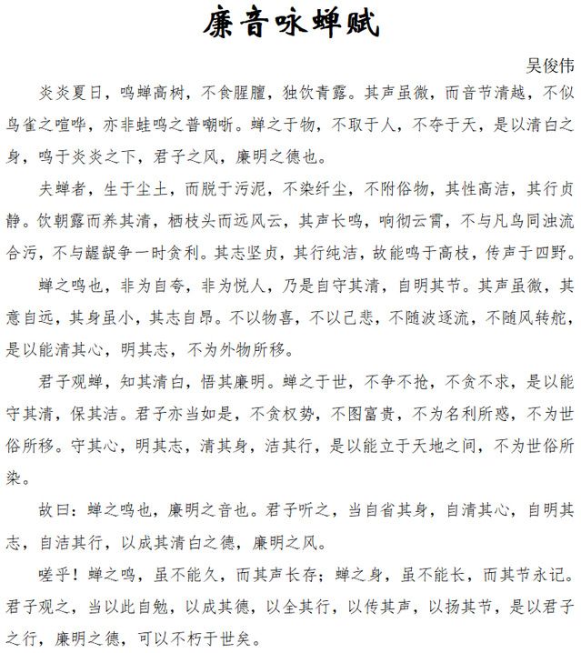 二等奖 | 《廉音咏蝉赋》 | 文学创作类 | 吴俊伟 | 哲学院 |