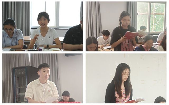 在交流研讨环节,结合学校6月份党员教育培训关于加强党的作风建设集中大课内容和本次集中学习内容,以及围绕毕业生党员理想信念教育、文明诚信教育、就业创业教育等进行讨论,大家开展交流。李郅君、唐雪珺、裴祎博、刘洳君相继发言。