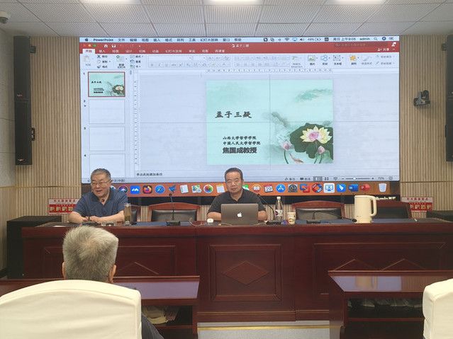 (通讯员李佳颖)6月29日上午,中国人民大学哲学系教授焦国成教授来我院进行了“孟子三疑”为主题的讲座。本次讲座由王雨辰院长主持,学院的陈食霖老师、本科生、硕士生和博士生参与了此次讲座。