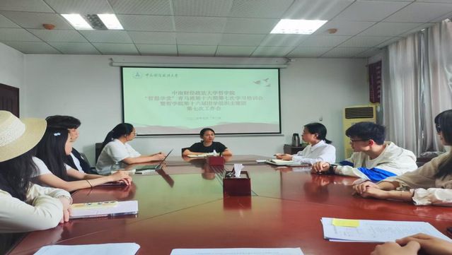 5月23日16:00,“哲思学堂”青马班第十六期第七次学习培训会暨团学组织主席团第七次工作会在文沛楼319召开。团委书记陈意萍老师及主席团全体成员参与了本次会议。会议由院学生会主席李璋晗主持。