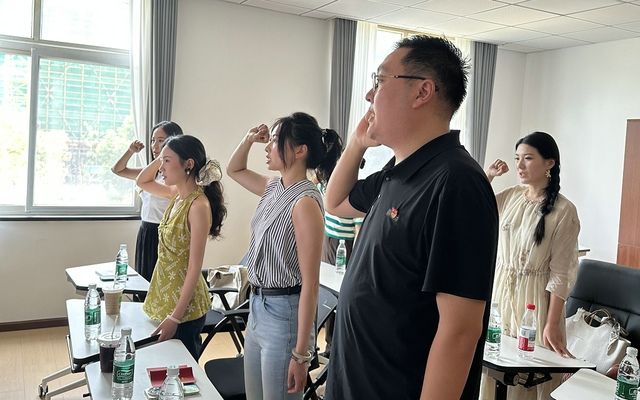 会议伊始,全体党员自觉足额交纳7月党费;郑亚岚同志领誓,集体重温入党誓词;幸沐梓同志诵读、领学《中国共产党章程》第二章党的组织制度(第十五条——第十八条),认真学习党章党规。