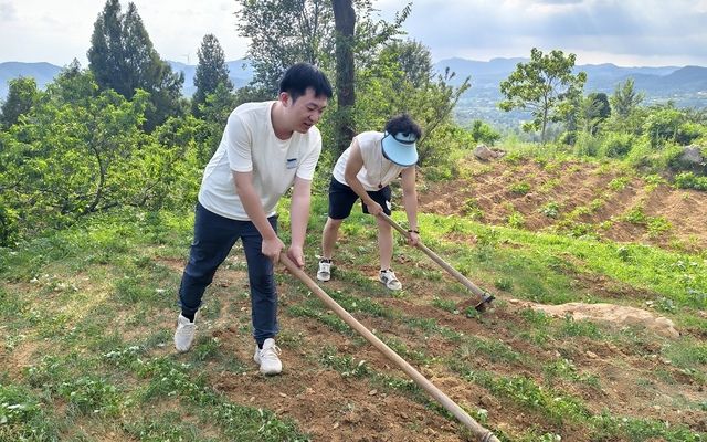 汝州市将乡村特色民宿作为乡村旅游发展的重要抓手,纳入乡村振兴战略规划,打造了云堡妙境等特色品牌。该项目位于大峪镇袁窑村,总面积约800亩,以万安西寨保护性开发为前提,围绕古堡创新利用,构建集民宿旅居、山地观光、生态康养、农事体验、户外运动等业态于一体的高端体验式旅游目的地。为深入了解云堡妙境所蕴含的农文旅融合发展模式,在实践活动期间,哲研行团队多次走访,与景区负责人、员工、游客深入访谈,并与地方文旅局和当地村支书谈话。同时,哲研行实践队在村支书的介绍下,为袁窑村贫困户带去礼品,并帮助他们在田地里除草。