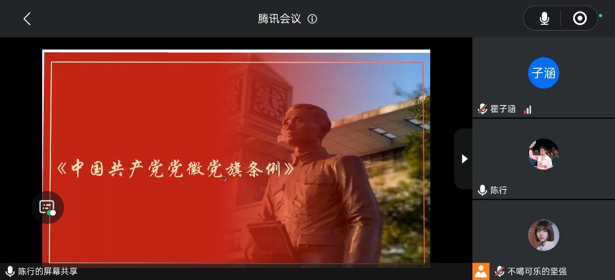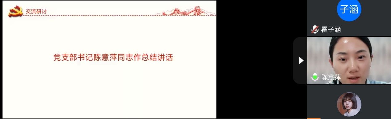 (学生通讯员:霍子涵/摄影:霍子涵)7月26日,哲学院本科生第一党支部在线上腾讯会议开展主题党日活动,支部书记陈意萍和支部全体党员参会。活动由王婧巧同志主持。