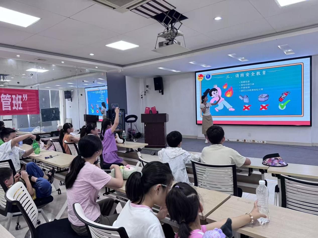 面对暑期多发的网络安全与气象安全问题,志愿者顾秋婕则通过角色扮演,模拟“免费皮肤”“扫码领玩具”等骗局,教会孩子谨慎对待网络信息、保护个人隐私;气象安全环节则借助口诀朗读、图片判断等形式,帮助孩子掌握雷雨、台风、高温等极端天气下的自护常识。