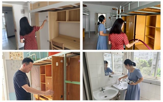 9月3日上午,学院党委书记刘琳琳、研办主任王路芳、教学秘书吴林和院研会主席团成员,逐间检查新生宿舍的用电、用水、家具等设施,对发现的问题认真记录,并及时反馈给后勤工作人员,督促上报维修,确保新生入校便享受舒适的住宿环境。