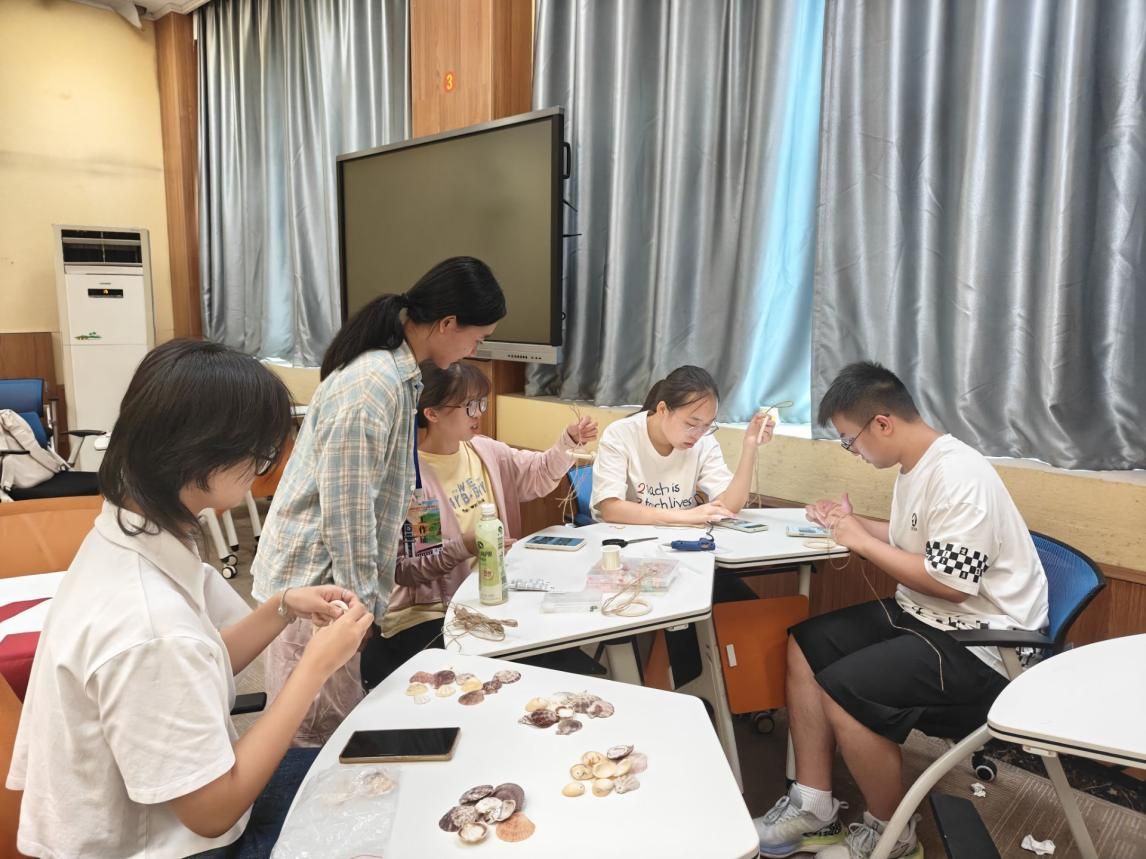 活动以“废弃贝壳艺术再生”为核心,既破解贝壳垃圾环保痛点,又为公益事业注入创新活力。活动现场,在手创协会负责人的指导下,志愿者们充分发挥创意,将原本无用的废弃贝壳打磨、穿线、组装,一步步制作成造型各异的贝壳风铃。制作过程中,志愿者们相互交流、分享想法,现场氛围十分热烈,原本废弃的贝壳在大家手中逐渐变成承载着环保与爱心的工艺品。