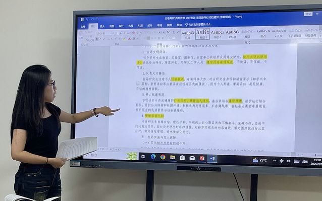 (通讯员 殷明玉)2025年9月18日晚上,哲学院研究生第一党支部在文澴楼203教室开展“落实八项规定 传承红色精神”主题党日活动。会议由支部书记王彦婷主持,研办主任王路芳和全体党员参加。