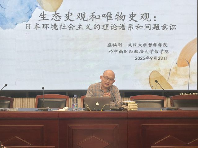 (通讯员 刘宇飞龙 / 摄影 李佳颖)9月23日晚,武汉大学哲学学院副教授盛福刚应邀来我院进行了一场主题为“生态史观和唯物史观:日本生态社会主义的理论谱系”的精彩讲座。讲座由张佳副院长主持,学院部分博士生和研究生聆听了本次讲座。