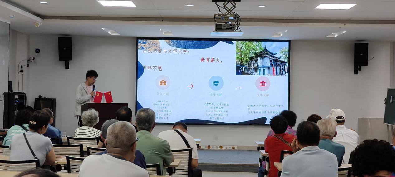 (学生通讯员:刘灿如)9月19日上午9时,哲学院组织志愿者赴武昌区粮道街街道花园山社区开展花园讲堂第五期活动,志愿者梁晨奇围绕“花园山:让历史可居可感”主题,向在场的50余名党员同志,开展了一场生动的讲解活动。本次讲解以花园山的历史脉络为线索,带领现场党员走进这片承载着厚重人文与革命精神的土地,感受历史与当下的交融。