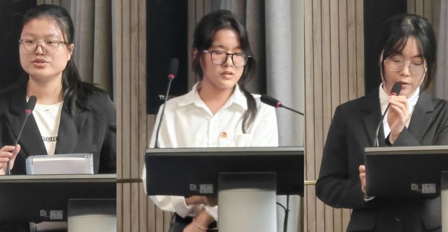 答辩环节中,十一位候选人依次登台,他们围绕思想表现、学习成绩、科学研究、社会实践、学生工作等方面依次上台进行展示和答辩。评委们依照评审实施细则,秉持公平、公正、公开的原则,进行严格评审和打分。