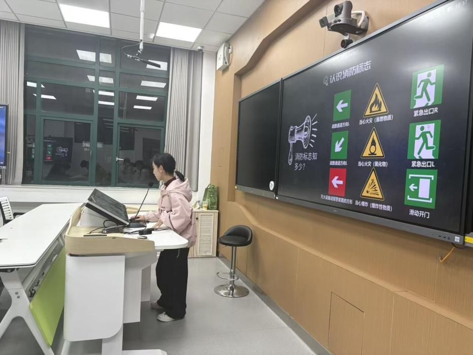“我来考考你”环节将现场气氛推向高潮。通过问答形式,同学们快速巩固了消防标志识别(如疏散通道、爆炸物警示等)、报警电话(119)、火灾举报热线(96119)等关键知识,进一步强化了“火场有序逃生”“理性自救”的核心原则。