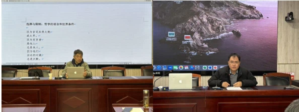 沙龙讲座的第一场由刘斌老师发言,题目为“选择与限制:哲学的语义和世界背景”。刘斌认为,哲学、语言和世界在某种程度上构成了三体式的关系,彼此相互构造。希腊人选择“灵魂”而非“自我”或“主体”,我们可以追问其选择的必要性和必然性。他接着以康德为例,举例康德不仅在框架方面给哲学贡献,后世的哲学家也有理论名称直接源自康德。而这些伟大的哲学家的著作或学说,我们也有选择的可能性,无须依从教科书所说。而选择不是无由来的选择,有其基础和条件,同时也有限制。刘斌进一步解释,借助某些形式和连接,转换视角,不断积累,即便有所限制,人类也可以推进共识。限制就如语言,思想需要由语言表达出来,词不达意的情况却相当常见,但无论如何,人类的思想都还需要用语言来表达。他表示康德的先验自我是一个抽象点,是理解世界的可能性,是他的哲学的出发点,但康德的这个点总是朝向世界——这个世界是某种选择的结果,是从希腊到现在的选择,而不是自然就在那里。世界架构是一种选择,是生活世界整体意义的选择,而哲学帮助强化了这一点。