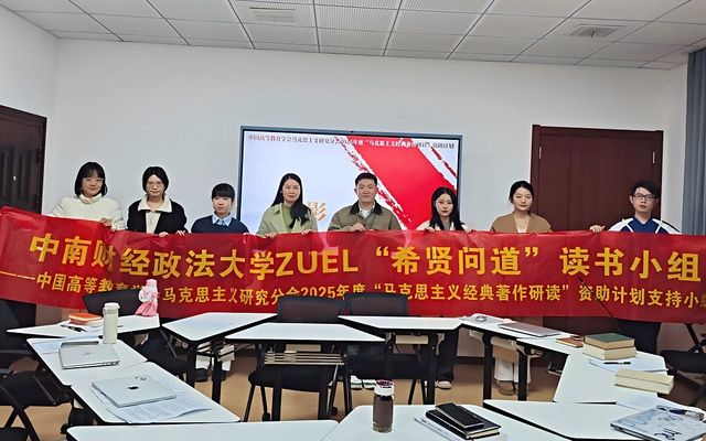 据悉,ZUEL“希贤问道”读书小组经组委会专家三轮评审,与来自北京大学、清华大学等高校、涵盖本硕博不同学历层次的149个读书小组携手入选中国高等教育学会马克思主义研究分会“马克思主义经典著作研读”资助计划,也是继2024年度ZUEL“哲思南湖”读书小组之后,我院第二次入选该资助计划。ZUEL“希贤问道”读书小组由我院副院长、博士研究生导师张佳教授指导,裴祎博担任组长,杨小斐、戚杨泽、陈淑芹、桂子宸、孙诤诚、王晰、杨诗涵、刘静等硕博研究生参与。在未来一学年内,本小组将系统开展马克思主义经典原著的深度研读与空间理论相关的专题研讨,聚焦文本、关切时代,着力提升成员的原著阅读功底与学术问题意识。通过持续的集体学习,推动形成严谨踏实、思辨共进的研学风气,助力学院构建理论扎实、视野开阔的人才培养环境。