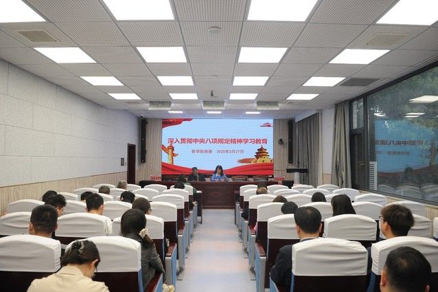 3月27日下午,学院召开深入贯彻中央八项规定精神学习教育动员部署暨巡察整改通报推进会议,传达学校此次学习教育启动部署会议精神,学习学校《深入贯彻中央八项规定精神学习教育的实施方案》,对学院深入贯彻中央八项规定精神学习教育作出安排。同时,对学院的巡察整改工作进行通报,对下一步工作提出要求。全体院领导班子成员、教职工参会,会议由党委书记刘琳琳主持。