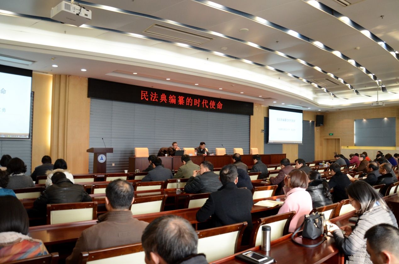 张教授从多角度阐述了民法典的编纂对社会的影响,民法典的主要结构和内容,以及民法典编纂的重要意义,讲述深入浅出,理论扎实,内容丰富,给教职员工上了生动的一课。全体校领导,各学院处级干部,各职能部门和直属单位副科级以上干部参加了会议。