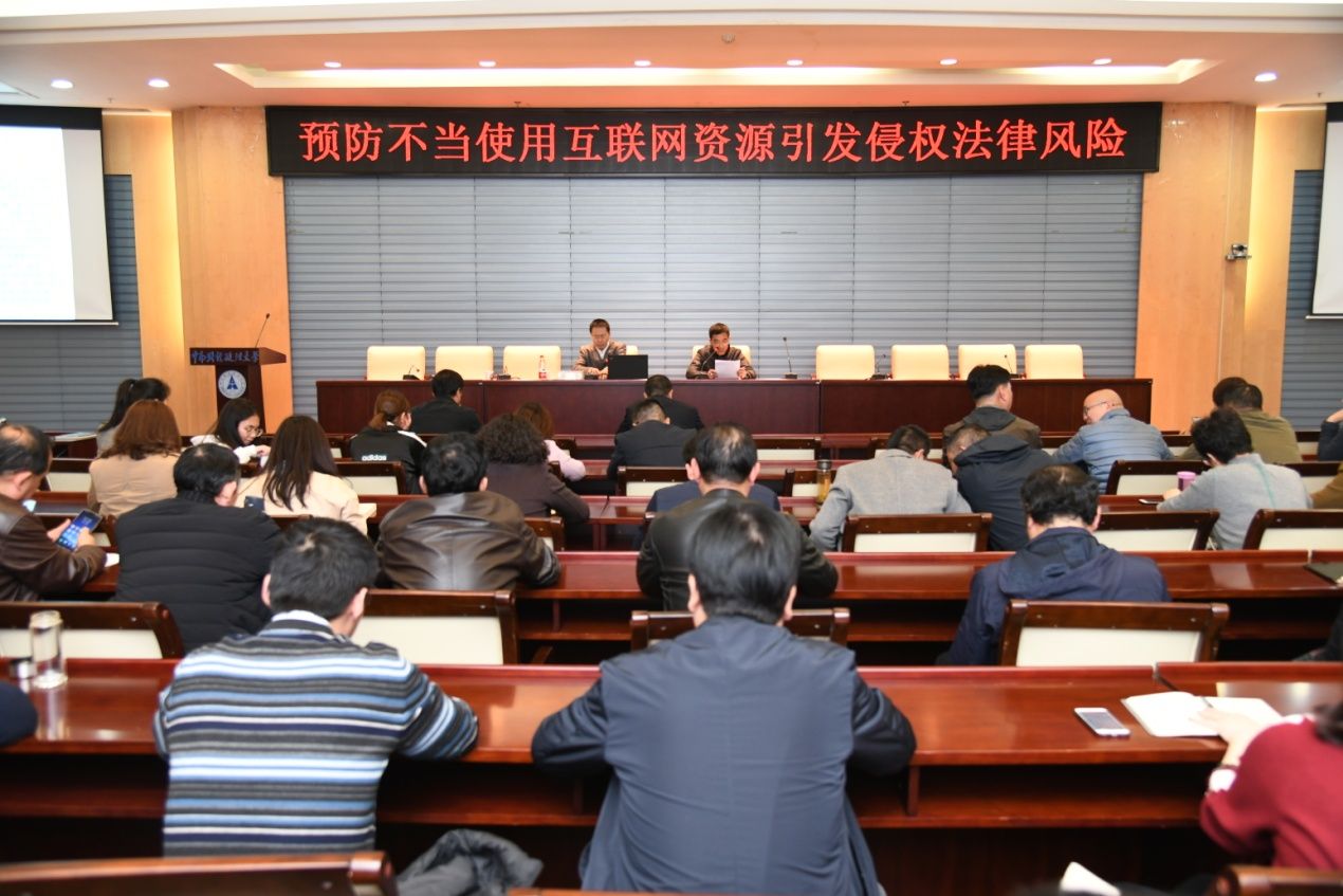 党的十八大以来,习近平总书记把创新摆在国家发展全局的核心位置,这对做好知识产权工作、推进知识产权强国建设提出了新的要求。近期,不当使用互联网资源的现象频繁发生,多所部属高等学校收到知识产权保护代理机构的律师函或者因侵犯他人知识产权被起诉,原因均系相关高校二级单位或学生社团未经版权确认、未经授权,而在学校官网、微信、微博和学生社团网站等应用场景中,随意使用来自互联网上的音乐、影像、图片、文章、书籍等资料而起。学校已经收到教育部政法司来函,要求学校预防使用互联网资源引发侵权法律风险,尽快排查消除风险隐患,并加强培训。为普及和提高教职员工的知识产权保护意识,推进学校知识产权运用和保护机制的完善,2019年3月14日,学校特邀请我校知识产权学院胡开忠教授在中原楼七楼会议室作题为《预防不当使用互联网资源引发侵权法律风险》的专题讲座。