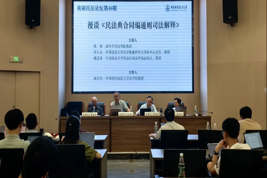 在“民法典宣传月”期间,法学院及民商法学科积极组织开展“南湖民法论坛”活动,邀请兄弟高校专家学者齐聚一堂,围绕“信赖的上天与下凡”“漫谈《民法典合同编通则司法解释》”“民法典善良风俗原则的类型归纳与功能识别”等主题,畅谈民法典知识。