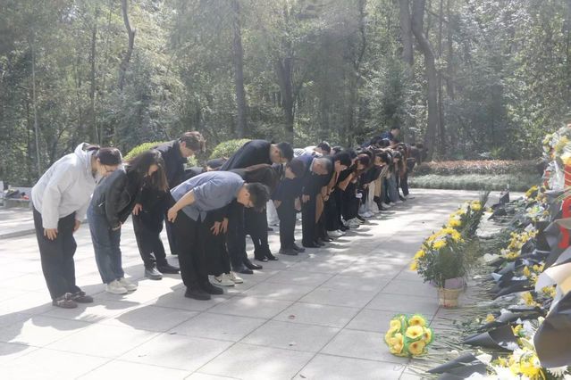 党员们在项英烈士雕像前整齐列队,依次敬献鲜花,并鞠躬致敬。朵朵白菊寄托着对革命先烈的无限哀思,深深鞠躬表达着对英雄精神的崇高敬意。